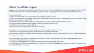 2. Descrierea programului de afiliere trebuie să se adreseze afiliaților, nu consumatorilor finali. Spune-le afiliaților de ce să te promoveze pe tine – ce le oferi tu și nu le oferă altcineva? Pentru că ei vor fi agenții tăi de vânzări și va trebui să îi convingi să lucreze cu tine. PRO TIP | Programele de afiliere Neer.ro și Orange.ro au descrieri foarte bune din care te poți inspira. 3. Programul de afiliere se poate rafina din Termeni și Condiții. Platforma 2Performant permite setarea de condiții speciale pentru anumiți afiliați. Una din modalitățile prin care te poți folosi de asta este setarea canalelor de comunicare diferențiat pe tipuri de afiliați sau categorii de produse. De exemplu, dacă nu vrei să permiți promovarea prin PPC (Google/Facebook Ads) în mod uzual, poți să o permiți doar în anumite condiții. Și legat de asta, nu îți face griji, brand bidding-ul (licitarea pe cuvinte cheie de brand) este interzisă la nivelul întregii platforme.